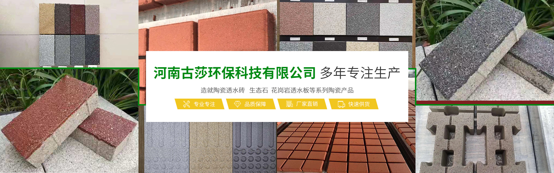 河南古莎環(huán)保科技有限公司總坐落于交通樞紐城市鄭州,是一家具備研發(fā)、生產(chǎn)、銷售能力為一體的綜合性現(xiàn)代化陶瓷企業(yè)。本公司專業(yè)生產(chǎn)經(jīng)營生態(tài)陶瓷透水磚、生態(tài)鋪石、PC仿石材透水磚、PC仿石材景墻磚、普通透水磚、燒結(jié)磚等系列產(chǎn)品,完善的研發(fā)團(tuán)隊,完善的生產(chǎn)流水線設(shè)備,打造完善的陶瓷企業(yè)。古莎環(huán)保科技現(xiàn)代化陶瓷企業(yè)是美化城市,改善生活環(huán)境質(zhì)量的生態(tài)環(huán)保產(chǎn)品,可廣泛應(yīng)用于公共建筑廣場、城市道路、公園、藝術(shù)景觀、廊道、房地產(chǎn)、別墅住宅小區(qū)、地鐵口、車站、高速公路服務(wù)區(qū)等。古莎環(huán)保科技在原有陶瓷企業(yè)基礎(chǔ)上,另拓展園林綠化、市政施工、瀝青包工包料施工、公路維修等業(yè)務(wù)板塊,專業(yè)培訓(xùn)了一些園林綠化、市政施工技術(shù)人員,并有多年的施工養(yǎng)護(hù)經(jīng)驗(yàn)以及建筑工程經(jīng)驗(yàn)。保證市政工程施工質(zhì)量以及園林綠化后期養(yǎng)護(hù)規(guī)范化、專業(yè)化。古莎環(huán)保科技所遵循的企業(yè)與品牌發(fā)展思路,是奠定在品質(zhì)與產(chǎn)品應(yīng)用之上。環(huán)保理念由我們共同倡導(dǎo),理性思考,以推進(jìn)步,感性溝通,以共建優(yōu)越。古莎環(huán)保科技與大家真誠合作,攜手共進(jìn),為助力海綿城市建設(shè),建筑高品質(zhì)的綠色城市生活貢獻(xiàn)一份力量!